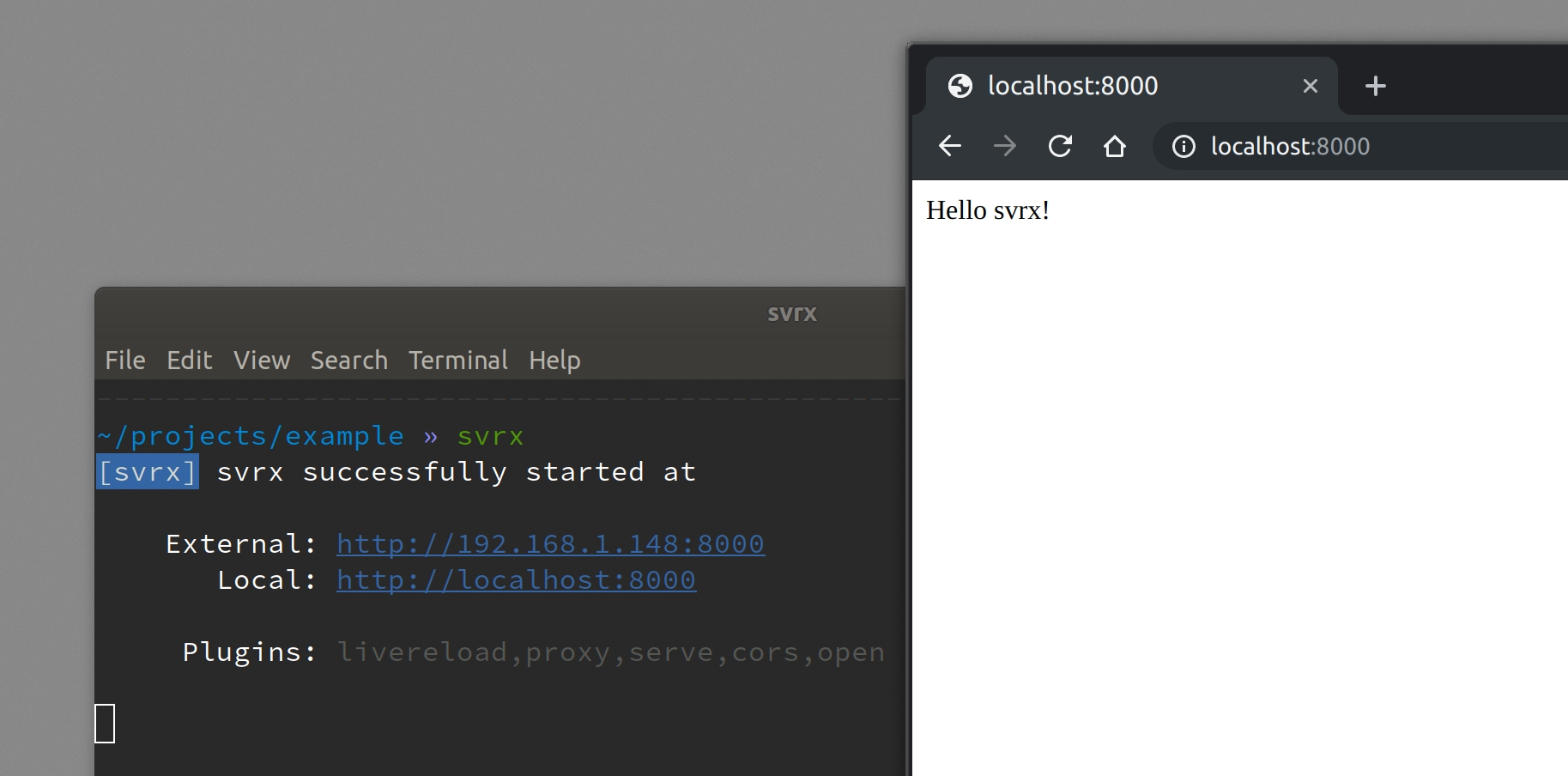 svrxVisit http://localhost:8000, you can see your page.